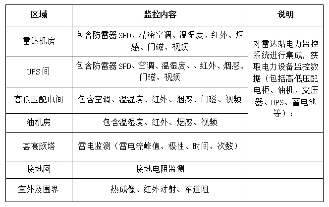 雷達(dá)站的建設(shè)既要考慮設(shè)備運(yùn)行的需求,同時(shí)還要考慮保障人員生活工作的需求。臺(tái)站離周邊城市較遠(yuǎn),人員配備少,設(shè)備種類多、數(shù)量大,各種保障措施自動(dòng)化程度要求更高,對(duì)運(yùn)行環(huán)境要求嚴(yán)格等特點(diǎn),決定了雷達(dá)站對(duì)智能綜合監(jiān)控系統(tǒng)的迫切需求。
