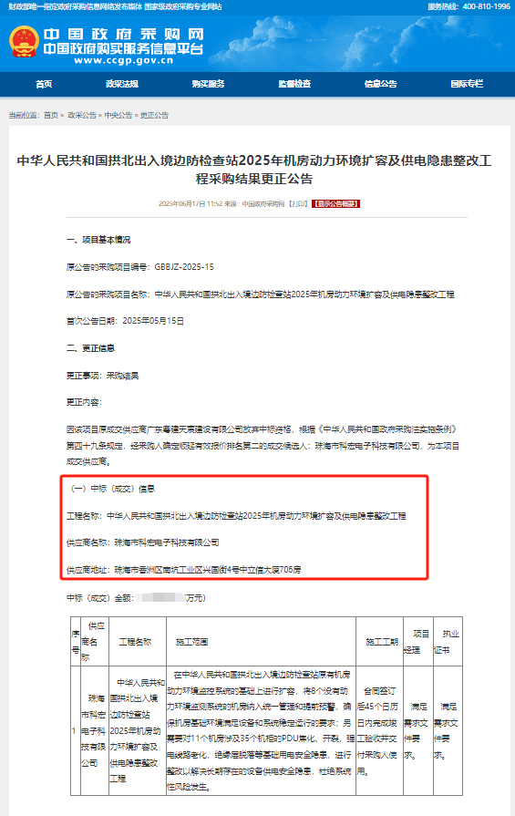 珠海市科宏電子科技有限公司憑借其在機(jī)房動(dòng)力環(huán)境監(jiān)控領(lǐng)域的專業(yè)實(shí)力和豐富經(jīng)驗(yàn),贏得了此次項(xiàng)目的信任與委托。
